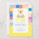 Patchwork Gold Bär, Baby Dusche Einladungen. Ideal für Babyduschen und Kindergeburtstage.