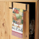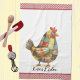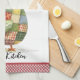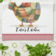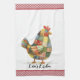 Ein niedliches Küchenhandtuch mit Huhn-Thema mit einem farbenfrohen Patchwork, das mit einem roten Gingham-Stil versehen ist. Personalisieren Sie es mit Ihrem Namen oder einer anderen Textbezeichnung. Sehen Sie andere Küchendekorationen in dieser gleichen Designkollektion.