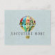 Ein Blumenmuster-Heißluftballon schwimmt auf einem blass blauen Himmel mit einer Erinnerung zu allen, "Abenteuer mehr"