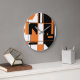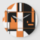 Patchwork Orange Schwarz-weiß Geometrie Abstrakt Große Wanduhr