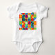 Dieser Babybodyanzug hat ein Bauhaus-Design von Quadraten mit merkwürdigen Formen im Inneren, wiederholt über das Design.