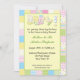 Babydusche Einladung mit Patchwork-Quilt-Rahmen von Streifen, Polka-Punkte und Karo in hübschen Pastellfarben und das Wort "Baby" in der gleichen Muster. Einladungen sind einfach zu gestalten und mit Umschlägen und Ihrer Wahl von Papier.