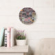 Patchwork Quilt Collage Nahtloses Drucken. Große Wanduhr