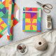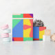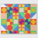 Dieses Verpackungspapier hat ein Bauhaus-Design von Quadraten mit ungeraden Formen innen, wiederholt über das Design.