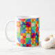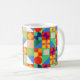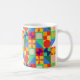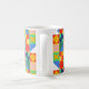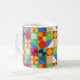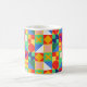 Diese Tasse hat ein Bauhaus-Design von Quadraten mit seltsamen Formen innen, wiederholt über das Design.