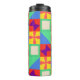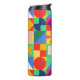 Diese Thermalflasche hat ein Bauhaus-Design von Quadraten mit merkwürdigen Formen innen, wiederholt über das Design.
