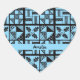 Schwarze Patchwork-Muster auf dem Baby-Blue-Aufkleber für ein Quilter. Eisenbahnzaun, Shoo Fly, Charter Eak und gebrochene Geschirr Muster.