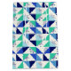 Moderne Flickwerk-Drehung auf einem nicht-religiösen Urlaubspapier mit klassischen Schneeflocken, die hinter geometrischen Formen herausschauen.