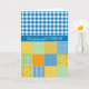 Eine schicke Geburtstagskarte, mit einem Gruß in Walisisch und einem Mix'n'match-Muster von Blue und White Karo Gingham und einem Imitat-Flickwerk von Daffodil-Mustern.
