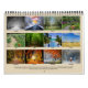 Ein Kalender mit Landschaften und Szenen, die saisonale Wege durch Land, Luft, Meer darstellen.