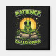 A serene cartoon grasshopper meditates on a rock beneath a glowing sunset, symbolizing mindfulness, patience, and inner peace.