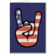 Sechzigerjahre Frieden-Amerikanisch-Flaggehand angehoben in Rockgruß.