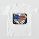 Die amerikanische Fahne in Neonlicht.. in einem Herzen verpackt. Feiern Sie Amerika mit diesem kühlen, rustikalen Emblem-Design. Patriotisch, lustig, cool.