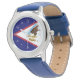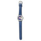 Kinderuhr aus Edelstahl mit blauem Lederarmband