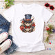 A charming patriotic illustration of a fluffy cat dressed in classic Americana style. The cat wears a tall Uncle Sam–inspired top hat decorated with stars, paired with a red bow tie, and is surrounded by elegant red, white, and blue florals with delicate gold accents. Rendered in a soft, painterly style with rich detail, this artwork blends whimsy, vintage charm, and national pride—perfect for festive décor, seasonal products, or cat lovers who enjoy a playful patriotic twist.