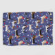 Patriotische Basset Hunde in rot-weiß-blauen Outfits mit US Flagge.