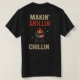 This bold 2-sided black T-shirt is made for true backyard patriots. The front design features crossed spatulas with stars and stripes, while the back showcases a flaming American grill with the phrase “Makin’ Grillin’ Chillin’.” Perfect for 4th of July BBQs, cookouts, or tailgate parties.