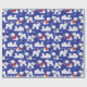 Patriotische Bichon Frise Hunde in rot-weiß-blauen Outfits mit US Flagge.