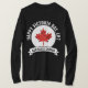 Patriotischer Black HAPPY VICTORIA TAG, EH Canada Flag T - Shirt mit CUSTOMIZABLE TEXT, entworfen in Form einer erhöhten Faust Power vor dem Hintergrund der Ahornblatt kanadische Flagge von Kanada. Es gibt ein Banner, das GOD BLESS CANADA liest, und in gekrümmtem Text oben, die Formulierung lautet HAPPY VICTORIA DAY. Der TOP-Text ist CUSTOMIZABLE, sodass Sie diesen Gruß nach Bedarf bearbeiten (oder löschen) können. Dieses patriotische kanadische Shirt wäre ideal, um die Feierlichkeiten zum Victoria Day Weekend zu veranstalten. Wählen Sie aus einer großen Auswahl an patriotischen kanadischen Designs für Kleidung, Wohngestaltung, Karten und Geschenke, die von Berean Designs entworfen wurden. Auch in Weiß und Rot erhältlich.