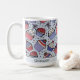 Mit dieser spielerischen und farbenfrohen Tasse in hellblau machen Sie Ihre Feierlichkeiten zum 4. Juli besonders. Ein Muster aus verspielten roten, weißen und blauen Kuchen mit Toppers vom 4. Juli, Erdbeeren, Kirschen & bunten Sprinklen. Handgezeichnet mit Liebe, personalisiert mit Ihrem Namen und einer besonderen Botschaft am Ende, ist es perfekt, um Ihrem Morgenkaffee eine köstliche Touch hinzuzufügen.