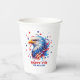 Mit diesem patriotischen Papier-Becher-Design, das einen kühlen Adler mit amerikanischen Fahnenfarben auf weißem Hintergrund und benutzerdefinierten Text in Rot und Blau enthält, tauchen Sie ein in den patriotischen Geist.