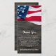 USA American Flag Memorial Patriotic Beerdigung Dankeschön Karte. Diese militärische Dankeschön-Karte verfügt über eine Flagge der Vereinigten Staaten von Amerika auf einem dunklen Holzhintergrund. Personalisieren Sie diese amerikanische Flagge danke Ihnen Karte mit Ihrer persönlichen Nachricht und Namen. Diese patriotische Beerdigung der amerikanischen Flagge wird ein wertvoller Sake sein. Ideal für eine militärische Beerdigung, für die Gedenkfeier oder die Feier des Lebens. In Love Memory Military Memorial American Flag. COPYRIGHT © 2020 Judy Burrows, Black Dog Art - Alle Rechte vorbehalten. Patriotische Fahne Gedächtniskirche Veteran Militärische Beerdigung Dankeschön Karte