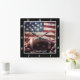 Celebrate your love for the game and country with this bold American football-themed wall clock. Featuring a striking flag design behind the clock face, it's perfect for sports enthusiasts who want to show their team spirit and patriotism. Ideal for home, office, or as a thoughtful gift.. The customizable design allows for personalized "Team Name" and "K.Smithright" text, as well as adjustable colors for the clock's border and numbers (1-12) to match specific team colors. This makes it a powerful and exciting piece of decor or a personalized gift for football enthusiasts and sports teams.