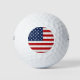 Der Golfball wird mit einem patriotischen Fahnenprint der USA gezeigt. Passen Sie dieses Objekt an oder kaufen Sie, wie es ist. Wählen Sie aus einer Vielzahl von Markenbällen mit Top-Namen.