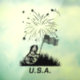 Eine niedliche Iguana, die unter einem Feuerwerk des Unabhängigkeitstages die US-Flagge schwenkt, zeigt individualisierbare Word: U.S.A.