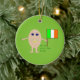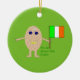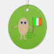 Dieses Ornament zeigt einen lustigen Cartoon eines Eis mit Armen und Beinen. Das Ei hat Arme und Beine und ein kleiner Riss im Kopf, der das weiße Innere aussetzt. Es hat blaue Augen mit einem schwarzen Schüler und ein großes Lächeln, wo das Eigelb des Eis zu sehen ist. Die Muschel sieht rau aus. Dieses patriotische irische Ei trägt stolz seine Flagge und es gibt grünen Text unter der Flagge, der lautet "es geht um das Kreische". Dieses lustige Design ist ideal für St. Patricks Day oder stolze irische Männer und Frauen.