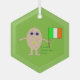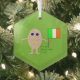 Dieses Ornament zeigt einen lustigen Cartoon eines Eis mit Armen und Beinen. Das Ei hat Arme und Beine und ein kleiner Riss im Kopf, der das weiße Innere aussetzt. Es hat blaue Augen mit einem schwarzen Schüler und ein großes Lächeln, wo das Eigelb des Eis zu sehen ist. Die Muschel sieht rau aus. Dieses patriotische irische Ei trägt stolz seine Flagge und es gibt grünen Text unter der Flagge, der lautet "es geht um das Kreische". Dieses lustige Design ist ideal für St. Patricks Day oder stolze irische Männer und Frauen.