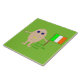 Diese phantastische Kachel weist einen lustigen Cartoon eines Eis mit Armen und Beinen auf. Das Ei hat Arme und Beine und ein kleiner Riss im Kopf, der das weiße Innere aussetzt. Es hat blaue Augen mit einem schwarzen Schüler und ein großes Lächeln, wo das Eigelb des Eis zu sehen ist. Die Muschel sieht rau aus. Dieses patriotische irische Ei trägt stolz seine Flagge und es gibt grünen Text unter der Flagge, der lautet "es geht um das Kreische". Dieses lustige Design ist ideal für St. Patricks Day oder stolze irische Männer und Frauen.