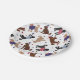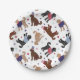 Patriotische Labradoodles in rot-weiß und blau mit Sternen, Streifen und Hundeknochen auf weißem Hintergrund.