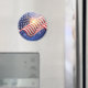 Patriotic Magnet 4. Juli Dieser runde Magnet wird mit einem Bilddruck einer patriotischen USA Flag und Feuerwerk gezeigt. Passen Sie dieses Objekt an oder kaufen Sie, wie es ist. Bild "Stock Image Image" all-free-download.com