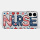 Protect your phone im Stil with this bold and colorful "NURSE" design, featuring red, white, and blue stars and stripes along with fun medical icons like stethoskopes, pills, hearts, and syringes. Perfekte Requory for proud american nurses, healthcare heroes, or nursing students. Makes a great gift for Nurse Apprection Week, Graduierung, or everyday use!