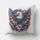 Dieses Kissen im Freien wird in einer patriotischen Fahne und Adlerprint gezeigt, perfekt für die Feierlichkeiten vom 4. Juli. Passen Sie dieses Objekt an oder kaufen Sie, wie es ist. Lizenzierte Printwerbung