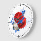 Diese Wanduhr zeichnet sich durch eine wunderschöne Blumenkonstruktion in Rot, Weiß und Blau aus. Es ist in 2 Größen in Rund und Quadrat erhältlich