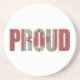 Ein patriotisches Textdesign mit dem Wort PROUD in einem kanadischen Fahnengrunge Schriftart.