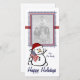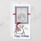 Ein patriotischer Weihnachtsschneemann mit amerikanischer Flagge. Passen Sie sich mit Ihrem eigenen Foto und Text an.