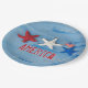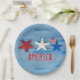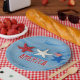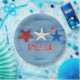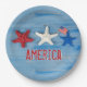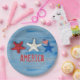 Starfish und amerikanische Flagge auf rustikal blauen Holz für Feiertag.