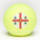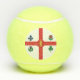 The tennis ball showcases a vivid print of the official flag of Montreal, with its distinctive red cross dividing the white field into four quarters. Each quadrant features a floral emblem representing the city's diverse heritage: the fleur-de-lis (French), the rose (English), the thistle (Scottish), and the shamrock (Irish). At the center, the red maple leaf unifies the design as a proud symbol of Canadian identity. This detailed and symbolic flag adds a meaningful and patriotic touch to your gear or décor.