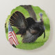 Patriotic Male Turkey zeigt seine Schwanz-Federn vor einer amerikanischen Flagge