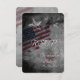 Dieses Design-Feature Die Vereinigten Staaten mit einer patriotischen Flagge. Es gibt auch dekorative Sterne und ein graues und schwarzes Grundierdach. Diese RSVP-Hochzeitskarte ist perfekt für Patriotische, Militärische und 4. Juli Hochzeiten in den Farben Rot, Weiß, Blau, Grau und Schwarz.