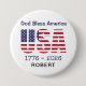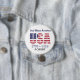 This patriotic USA flag stencil button is available in five sizes. Easily personalize and change text using the Template provided. This is a 3" round button pin. Also 1.25", 2.25" 4" and 6" in round shape and a 2" square are available. Customized by you, these make awesome gifts for family, friends, neighbors. Covered with scratch and UV-resistant Mylar. The printing on these is excellent. See "About" the product for additional information.