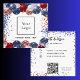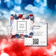 Weißer Hintergrund. Mit patriotischen bunten Ballons in Rot-Blau und Weiß dekoriert. Blau-rote Glitzern. Personalisieren Sie Ihr Firmenlogo und Text auf der Vorderseite und fügen Sie es hinzu. Weiße Buchstaben. Zurück: Vorlagen für Ihren Namen, Titel, Telefonnummer, E-Mail- und Website-Adresse, Ihren eigenen QR-Code für Ihre Website oder Ihr Social-Media-Konto.