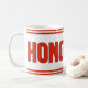Patriotische Kaffee-Tasse der Nationalflagge von Hongkong mit der reizvollen Aufschrift "Hong Kong", die mit dem Muster und den Farben der Nationalflagge verziert ist. Das Design wird mit den beiden doppelten dünnen Linien in den Farben oben und unten auf der Tasse beendet. Die Farben innerhalb des Bechers und auf dem Bechergriff werden mit der Erholung der Becherfarben ausgeglichen. Die Linienfarben können durch das Drücken der Schaltfläche "Design bearbeiten" auf eine beliebige Farbe geändert werden. Hier ist der fantastische Begleiter für die tägliche Tasse Kaffee. Charmantes Design, schöne Farben und das einzigartige Aussehen machen es zu einem perfekten Geschenk für jeden Anlass. © 2023 Länderder Welt