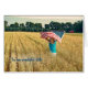 Junge Mädchen, die auf einem Weizenfeld mit amerikanischer Flagge rennen. Die Karte kann zum Geburtstag, Veteranen-Tag oder zu jedem patriotischen Ereignis verwendet werden.
