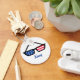 Ein Schlüsselanhänger, der eine schwarze Retro-Sonnenbrille darstellt. US Flagge zieren Linsen. Personalisieren Sie Ihren Namen in blau.