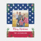 Feiern Sie den Urlaub oder geben Sie ein besonderes Geschenk mit dieser einzigartigen US Flag Weihnachtskarte - USA Fahne Design moderne rot-weiß-blau Design mit heiligen und Beeren. Personalisieren Sie mit Ihrem bevorzugten Foto und Familiennamen. Diese patriotische Weihnachtskarte eignet sich perfekt für Militärfamilien, Veteranen, patriotische FamilienWeihnachtskarten. COPYRIGHT © 2022 Judy Burrows, Black Dog Art - Alle Rechte vorbehalten. Patriotische amerikanische Flagge Militärisches Foto Weihnachtsflocken