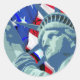 Patriotische amerikanische Flagge und Freiheitssta Runder Aufkleber